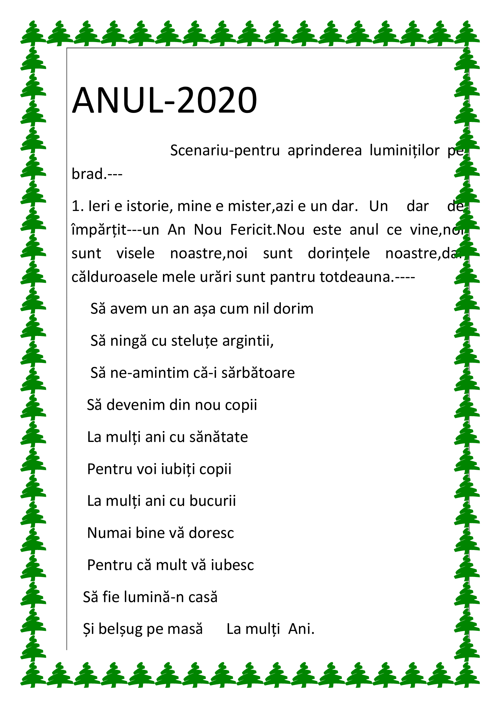 Anul 2020-scenariu pentru aprinderea luminițelor pe brad